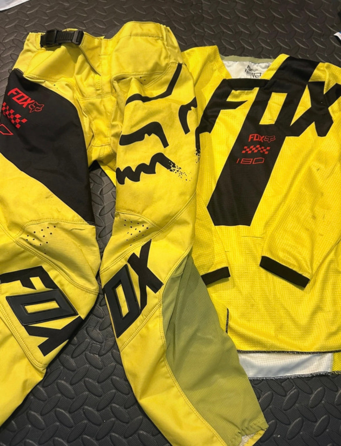 Fox motocross kit Youth large jersey and 26" pants yellow / black |